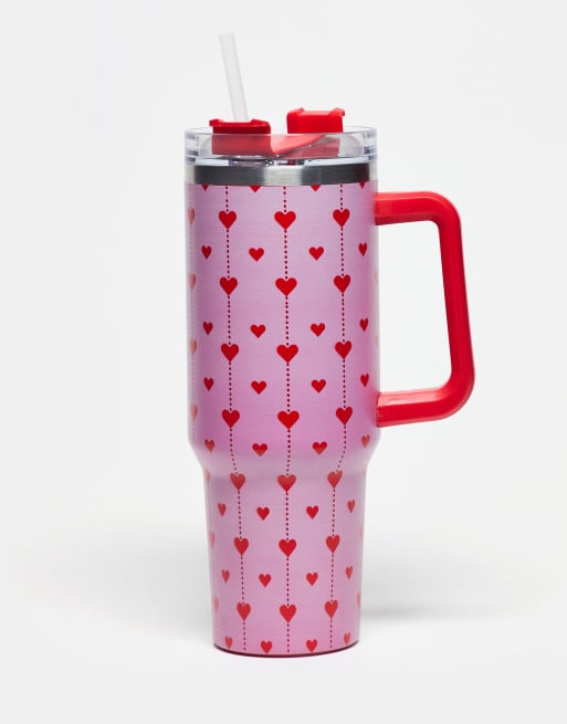 Daisy Street – Różowy kubek wielorazowego użytku we wzór w serca
