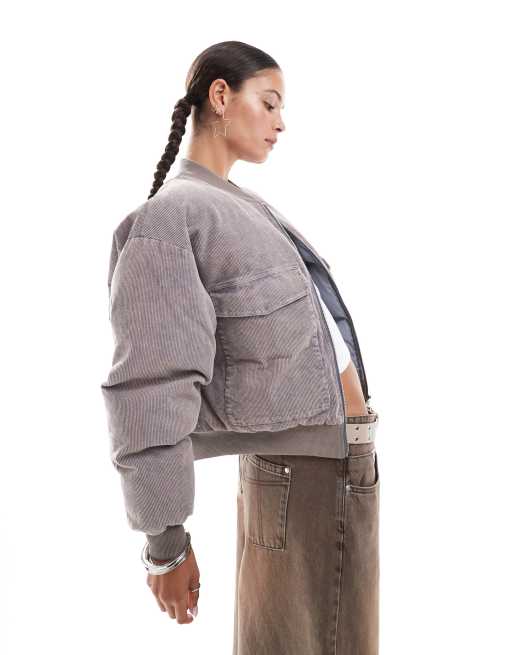 Daisy Street – Sztruksowa kurtka bomberka w stylu utility z efektem sprania