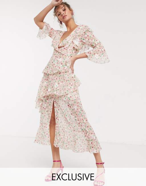 Dark Pink – Kwiatowa sukienka maxi z głębokim dekoltem