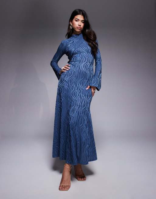 Daska – Niebieska sukienka maxi z zabudowanym dekoltem