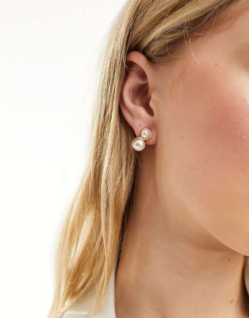 DesignB London – Białe kolczyki z dwiema sztucznymi perełkami