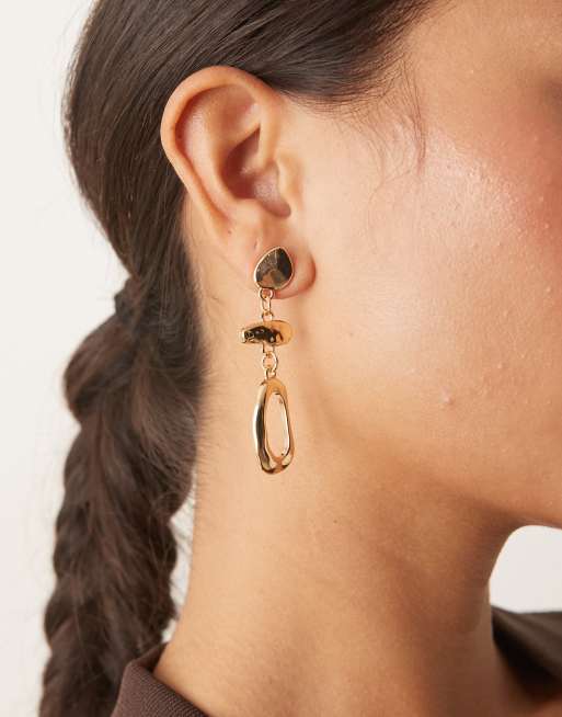 DesignB London – Długie abstrakcyjne kolczyki z efektem stopienia w odcieniu złota