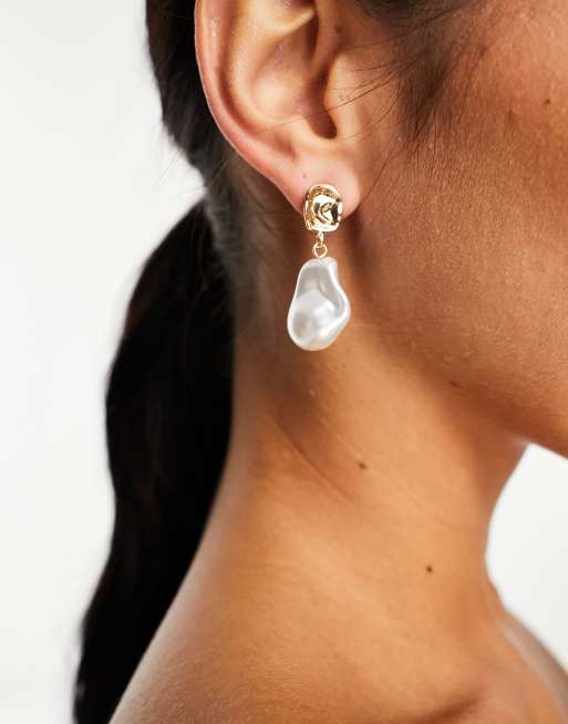 DesignB London – Długie kolczyki w odcieniu złota z asymetrycznymi perłami