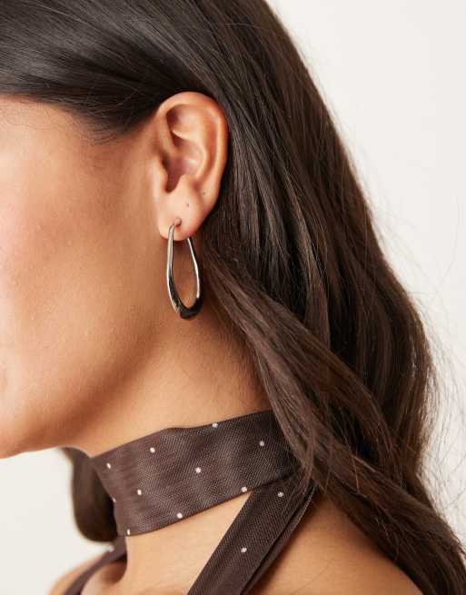 DesignB London – Duże kolczyki-koła o nieregularnym kształcie w srebrnym kolorze