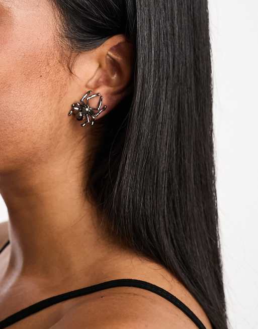 DesignB London – Halloween – Kolczyki z pająkiem w kolorze srebrnym