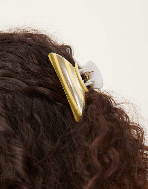 DesignB London – Klamra do włosów w paski w kolorze zielonym i brązowym