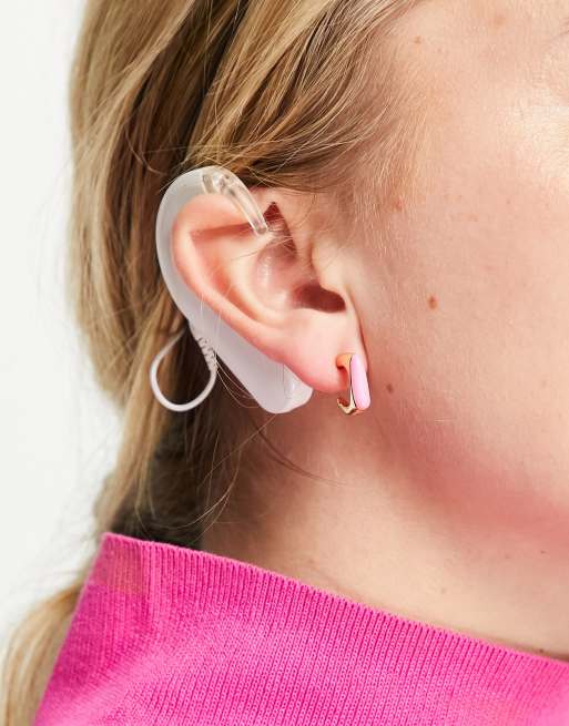 DesignB London – Kolczyki koła w odcieniu złota z emaliowaną różową ozdobą