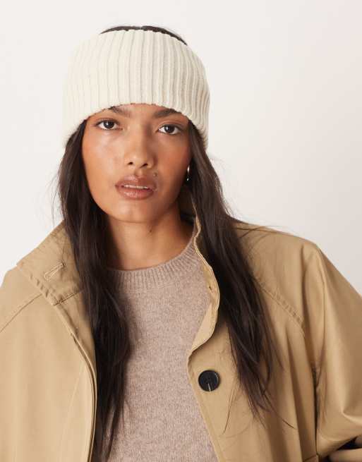 DesignB London – Kremowa opaska na głowę w szerokie prążki