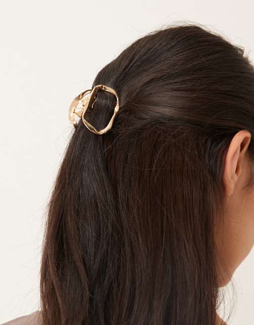 DesignB London – Mała metalowa klamra do włosów w złotym kolorze
