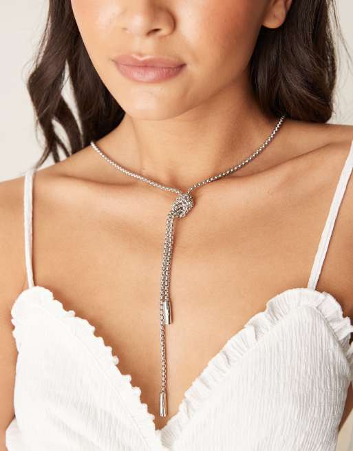 DesignB London – Naszyjnik typu lasso z węzłem w kolorze srebrnym