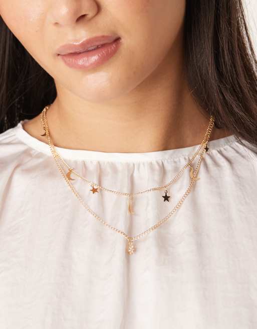 DesignB London – Naszyjnik wielorzędowy z zawieszkami w kształcie gwiazd i księżyca w kolorze złota