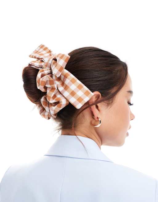 DesignB London – Rdzawa gumka do włosów w kratkę vichy z kokardą