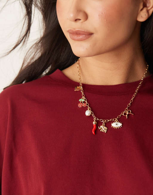 DesignB London – Warstwowy naszyjnik z zawieszkami w kolorze złotym