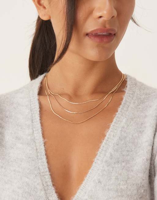 DesignB London – Wielorzędowy naszyjnik łańcuszkowy w odcieniu złota