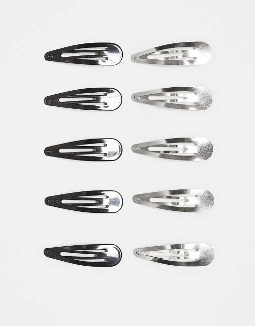 DesignB London – Zestaw 10 spinek do włosów w czarnym i srebrnym kolorze