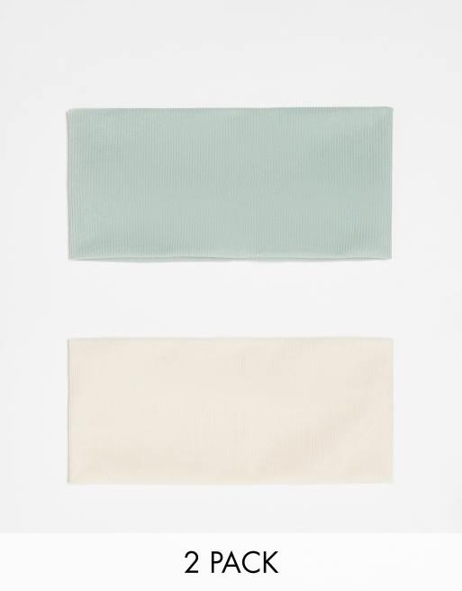 DesignB London – Zestaw 2 dżersejowych szerokich opasek na głowę w kolorach szałwiowym i ecru