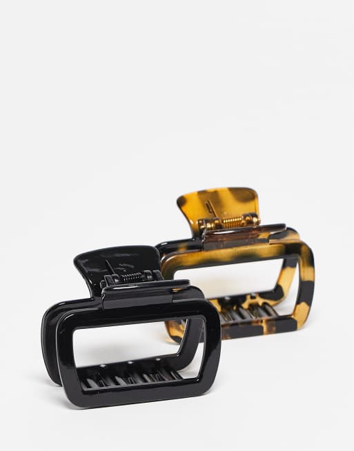 DesignB London – Zestaw 2 małych klamerek do włosów w kolorach czarnym i szylkretowym