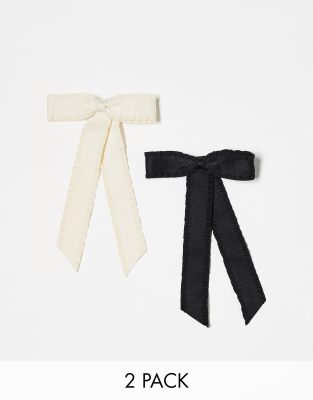 DesignB London – Zestaw 2 małych kokardek do włosów z falbanką w kolorach czarnym i kremowym
