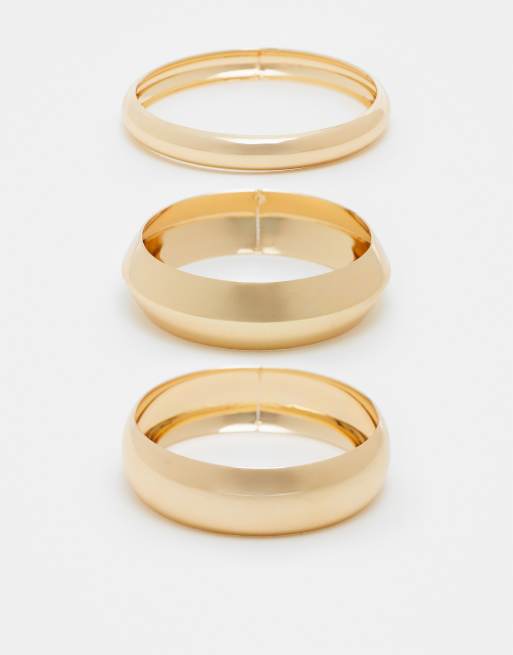 DesignB London – Zestaw 3 grubych bransoletek typu bangla w odcieniu złota