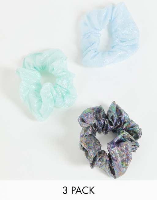 DesignB London – Zestaw 3 gumek do włosów w zielonych opalizujących odcieniach