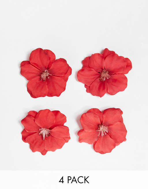 DesignB London – Zestaw 4 czerwonych spinek do włosów z kwiatkami
