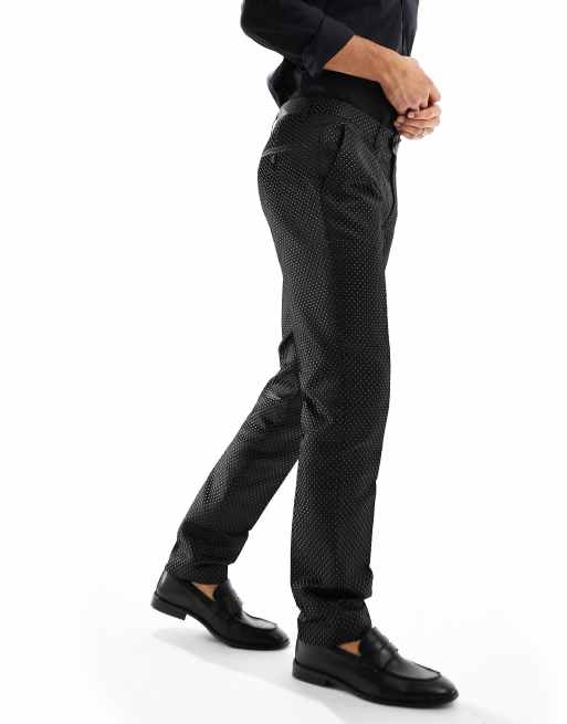 Devils Advocate – Czarne dopasowane spodnie garniturowe ze wzorem