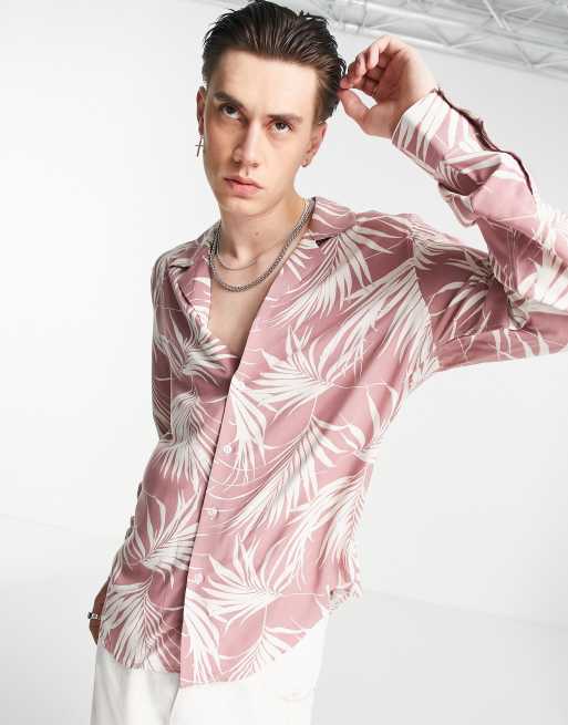 Devils Advocate – Różowa koszula w kwiatowy wzór z kołnierzykiem kubańskim