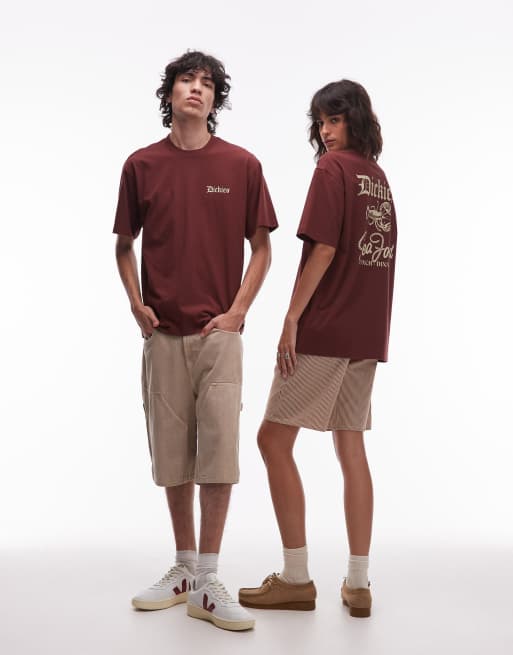 Dickies – Bordowy T-shirt z grafiką na plecach