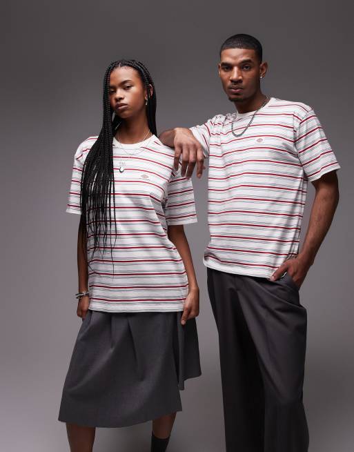 Dickies – Lewistown – T-shirt w paski w kolorze złamanej bieli i czerwonym