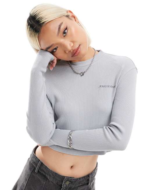 Dickies – Newington – Szary krótki T-shirt z długimi rękawami i efektem sprania