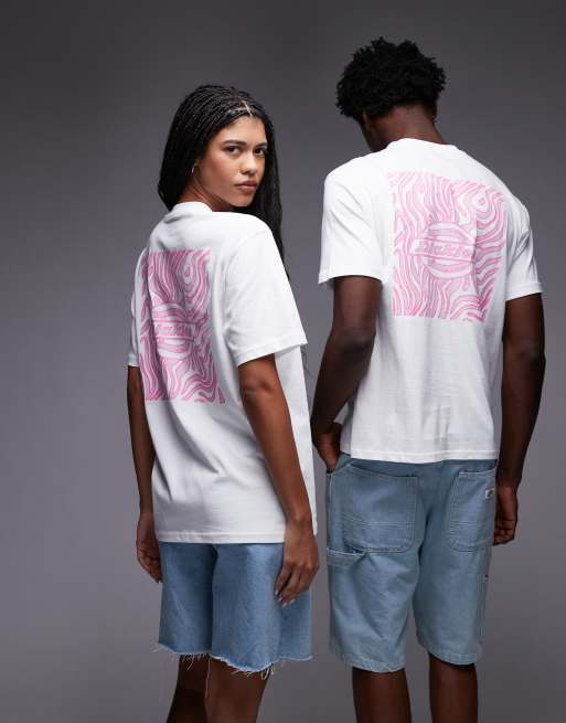 Dickies – Paradise – Biały T-shirt z różową abstrakcyjną grafiką na plecach