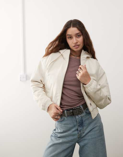 Dickies – Sztruksowa kurtka z kapturem w kolorze złamanej bieli
