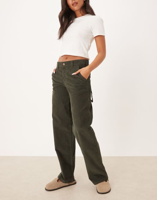 Dickies – Sztruksowe zielone spodnie carpenter z szerokimi nogawkami