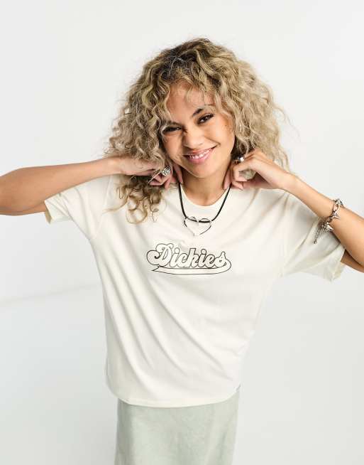 Dickies – T-shirt w kolorze złamanej bieli z uczelnianym logo – Tylko w ASOS