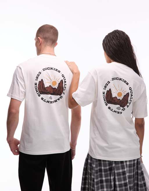 Dickies – T-shirt z nadrukiem krajobrazu na plecach w kolorze złamanej bieli