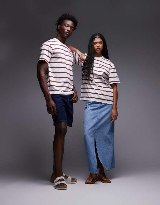 Dickies – York – Gruby T-shirt w paski w kolorze złamanej bieli i czerwonym