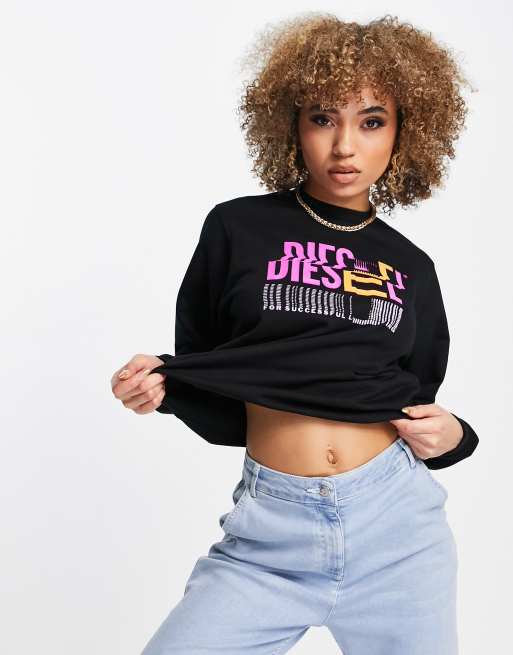 Diesel – F-ang-k14 – Czarna bluza dresowa z neonowym logo
