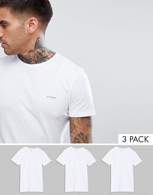 Diesel – Komplet 3 sztuk wygodnych białych T-shirtów o regularnym kroju ozdobionych logo