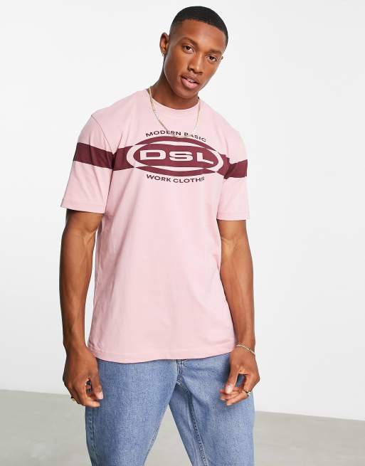 Diesel– T-Just – Różowy T-shirt z logo Dsl