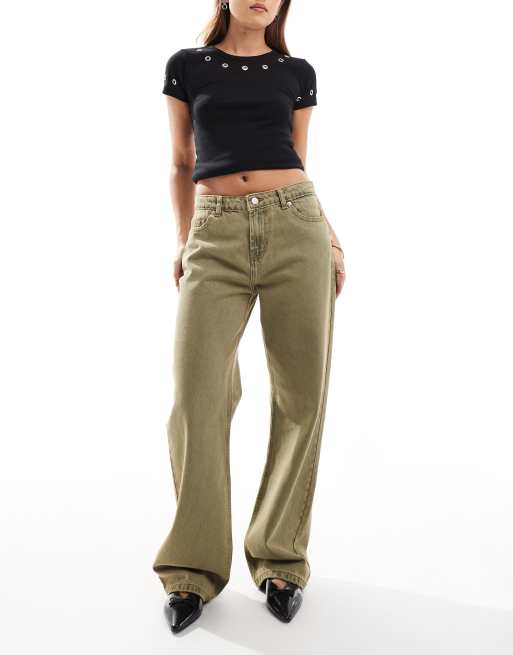 DTT – Brooke – Oliwkowe sprane jeansy skater o bardzo obszernym kroju