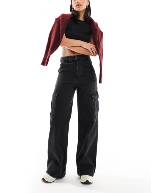 DTT – Dom – Czarne sprane bojówki jeansowe z prostymi nogawkami