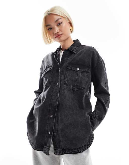 DTT – Jeansowa koszula oversize w spranym czarnym kolorze