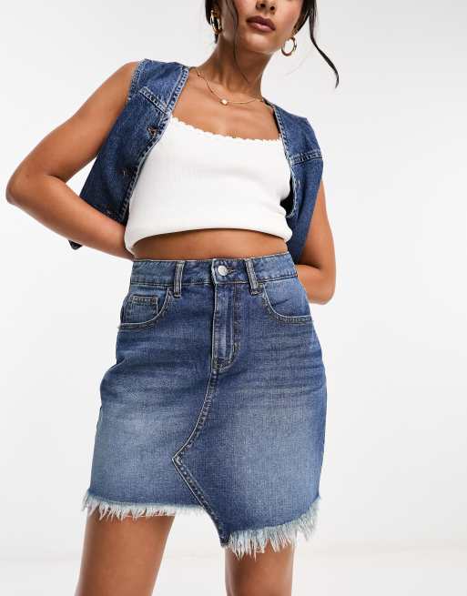 DTT – Niebieska jeansowa spódnica mini z surowym brzegiem