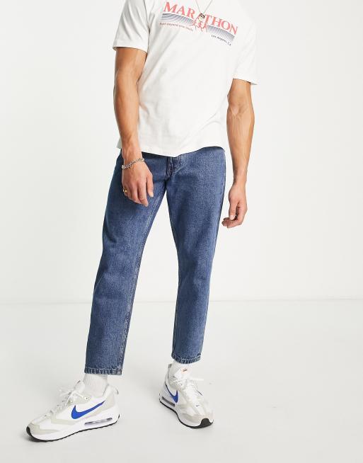 DTT – Niebieskie sztywne jeansy ze zwężanymi nogawkami o skróconym fasonie