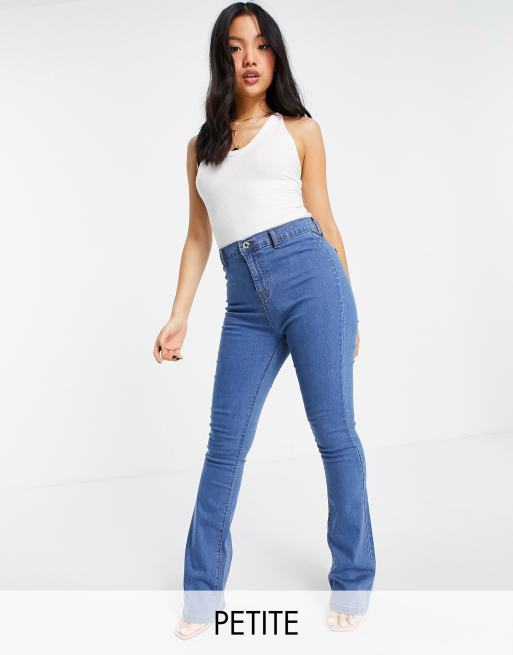 DTT Petite – Bianca – Niebieskie jeansy z szerokimi nogawkami i podwyższonym stanem