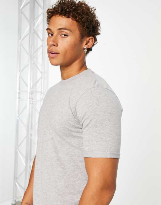 DTT – T-shirt z wywiniętymi rękawami w kolorze jasnoszarego melanżu