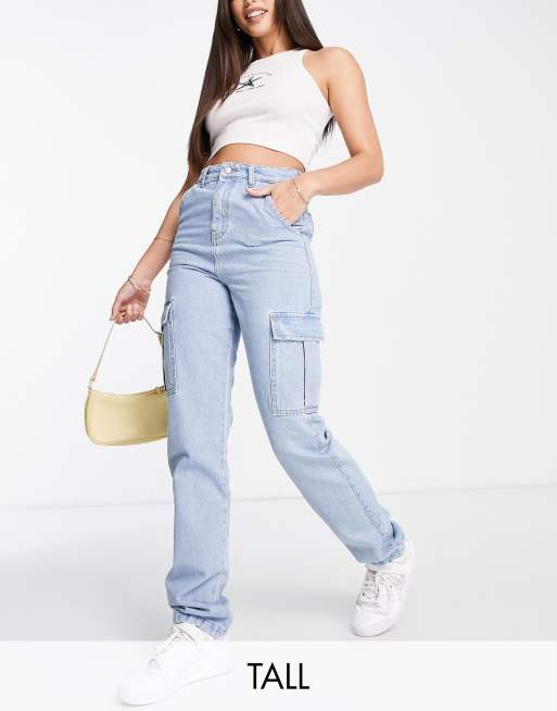 DTT Tall – Jasnoniebieskie jeansy z prostymi nogawkami i kieszeniami w stylu bojówek