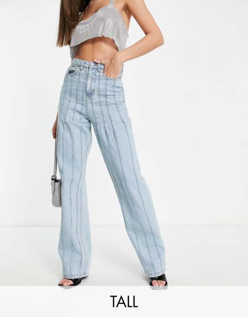 DTT Tall – Jeansy dad z prostymi nogawkami, podwyższonym stanem i ozdobnymi szwami z przodu