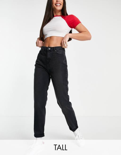 DTT Tall – Veron – Czarne sprane mom jeans o luźnym kroju