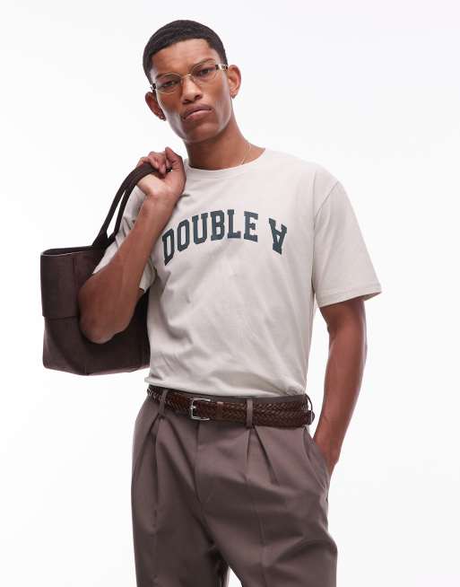 Double A By Wood Wood – Ace – Kamiennobeżowy T-shirt z logo